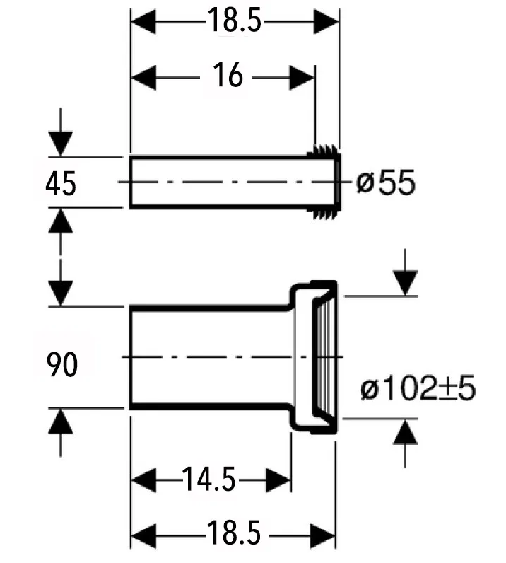 Длина патрубков 185 мм